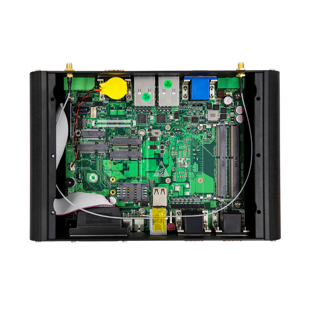 This new design fanless industrial pc supports 2*DDR4 SO-DIMM 260 pin slot Max 64GB RAM. 1*M.2 2280 M KEY PCIE3.0+ 1*SATA3.0 Slot for 2.5 inch HDD/SSD.Let you browse the web, chat, watch live video every day, for multitasking, enough to run multiple applications and browser tabs at the same time.